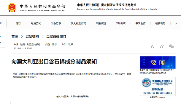 √中国商务部新闻-向澳大利亚出口含石棉成分制品须知: